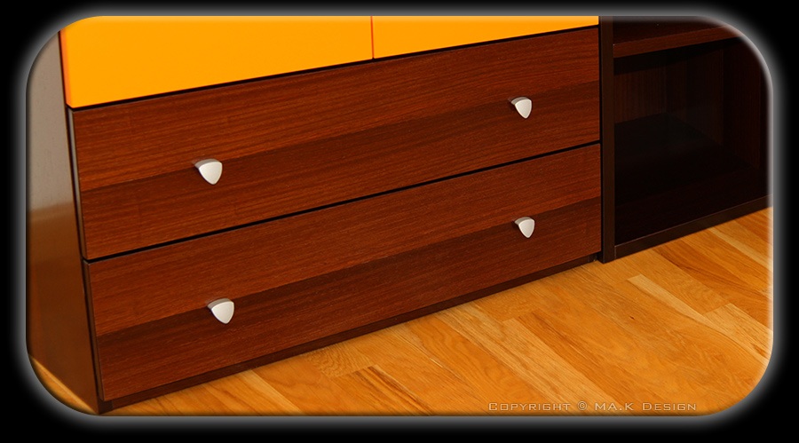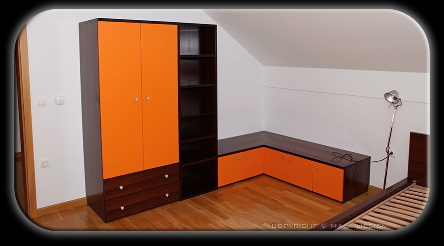 Delno furnirana garderobna omara in nizek kotni element.