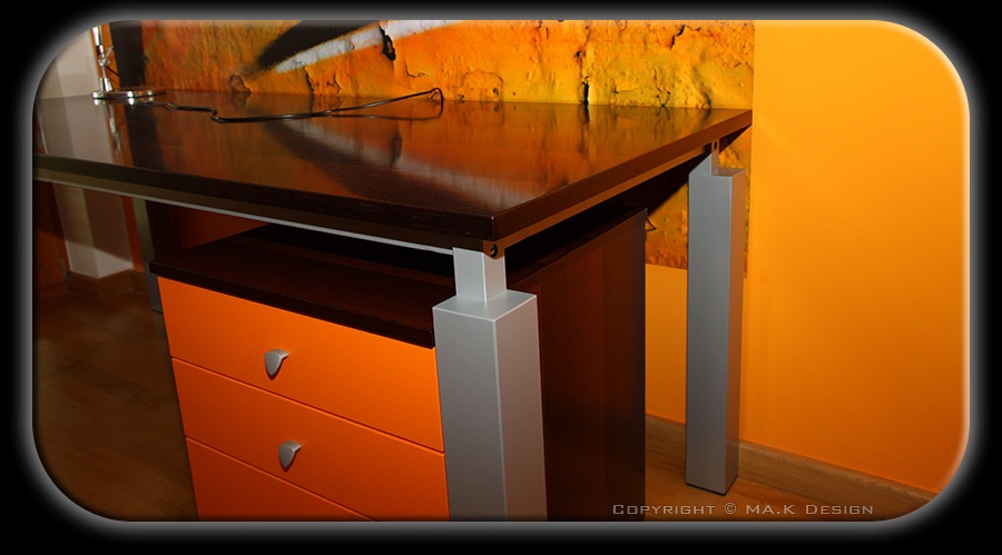 Detajl kovinskega podnožja pisalne mize.
