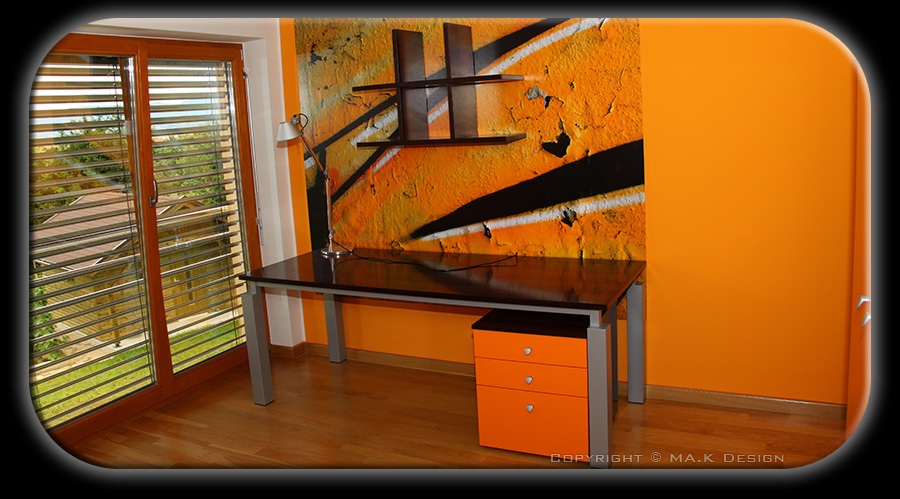 Kombinacija barv vnaša v prostor izrazito dinamiko.